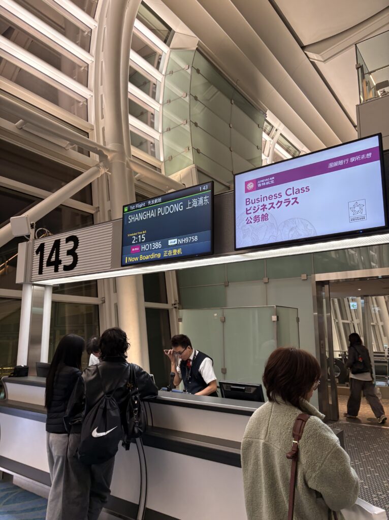 日本から張家界への直行便は現在存在しないため、往路では上海の浦東国際空港で乗り継ぎをして向かいました。